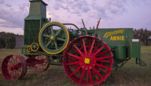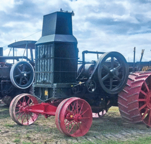 Premier prototype du futur Rumely OilPull. “Kerosene Annie” doit son nom à sa capacité à fonctionner au kérosène grâce au carburateur Secor-Higgins. Moteur refroidi par eau, mais utilisant un système d’injection d’eau pour stabiliser la combustion. Modèle encore expérimental sans marquage Rumely, pesant environ 26 000 lbs (≈ 11,8 tonnes). Considéré comme la base du design final des OilPull produits dès 1910.
